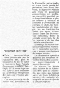 Energía 1979-1999". [artículo] La Segunda (Diario : Santiago, Chile)-- abr. 7, 1980, p. 26. .