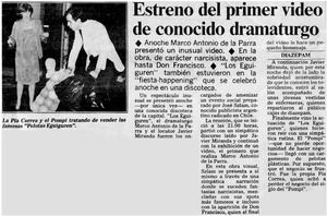 Estreno del primer video de conocido dramaturgo. [artículo] La Segunda (Diario : Santiago, Chile)-- abr. 16, 1985, p. 31. retr. .