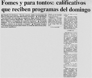 Fomes y para tontos: calificativos que reciben programas del domingo. [artículo] La Segunda (Diario : Santiago, Chile)-- jun. 30, 1982, p. 47. .