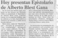 Hoy presentan epistolario de Alberto Blest Gana. [artículo]