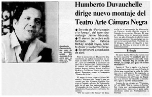 Humberto Duvauchelle dirige nuevo montaje del teatro arte cámara negra. [artículo] La Segunda (Diario : Santiago, Chile)-- mar. 15, 1985, p. 26. retr. .
