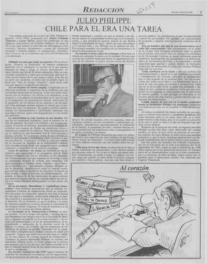 Julio Philippi: Chile para él era una tarea. [artículo] La Segunda (Diario : Santiago, Chile)-- jun. 2, 1999, p. 7. retr. .