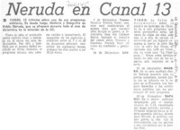 Neruda en canal 13. [artículo] La Segunda (Diario : Santiago, Chile)-- nov. 24, 1971, p. 16. .