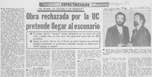 Obra rechazada por la UC pretende llegar al escenario. [artículo] La Segunda (Diario : Santiago, Chile)-- jul. 20, 1978, p. 25. retr. .