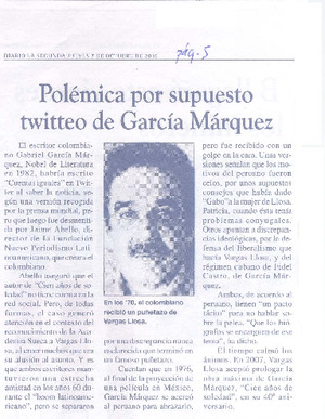 Polémica por supuesto twitteo de García Márquez [artículo].