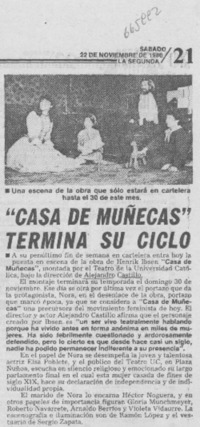 "Casa de muñecas" termina su ciclo. [artículo] La Segunda (Diario : Santiago, Chile)-- nov. 22, 1980, p. 21. fot. .
