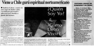 Viene a Chile gurú espiritual norteamericano. [artículo] La Segunda (Diario : Santiago, Chile)-- oct. 11, 2000, p. 39. il. .