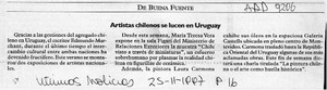 Artistas chilenos se lucen en Uruguay [artículo]. Las Últimas Noticias (Diario : Santiago, Chile)-- feb. 25, 1997, p. 16 .