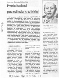 Premio Nacional para estimular creatividad [artículo]. La Tercera. -- oct. 16, 1984, p. 8. retr. .