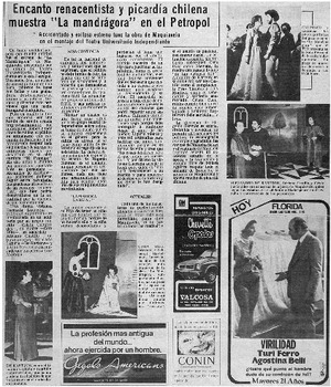 Encanto renacentista y picardía chilena muestra "La mandrágora" en ell Petropol. [artículo] La Tercera de la Hora (Diario : Santiago, Chile)-- sept. 15, 1980, p. 91. retr. .