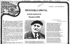 Diego Dublé Urrutia, premio nacional de literatura 1958. [artículo] La Tercera (Diario : Santiago, Chile)-- sept. 29, 1971, p. 2. retr. .
