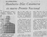 Humberto Díaz Casanueva es nuevo Premio Nacional. [artículo]