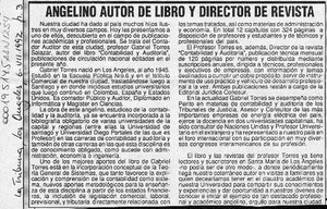 Angelino autor de libro y director de revista [artículo]. La Tribuna (Los Angeles). -- jul. 6, 1992, p. 3. .