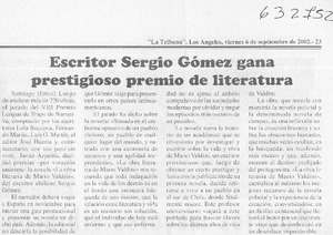 Escritor Sergio Gómez gana prestigioso premio de literatura [artículo] La Tribuna (Los Ángeles) sept. 6, 2002, p. 23 .