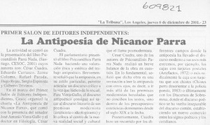 La antipoesía de Nicanor Parra [artículo] La Tribuna (Los Ángeles) dic. 6, 2001, p. 23 .