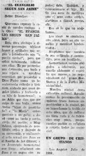 Cartas al director. [artículo] La Tribuna (Los Angeles, Chile)-- jul. 5, 1969. .