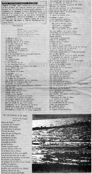 Poeta invitado: Joaquín Alliende. [artículo] La Tribuna (Los Angeles, Chile)-- sept. 15, 1988, p. 12. .