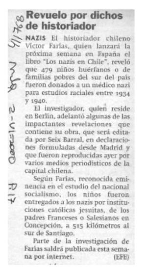 Revuelo por dichos de historiador [artículo] Mtg jun. 2, 2000, p. 17 .