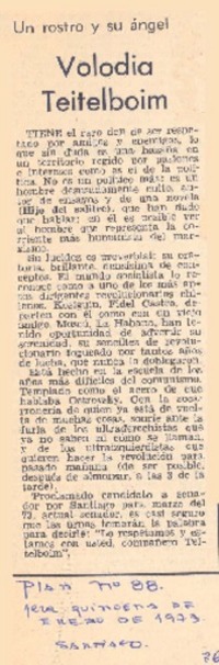 Volodia Teitelboim. [artículo] Plan (Santiago, Chile)-- no. 88 (1era. quincena de ene. 1973) p. 6. .