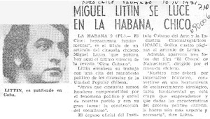 Miguel Littin se luce en La Habana, chico. [artículo] Puro Chile (Santiago, Chile)-- abr. 10, 1971, p. 10. retr. .