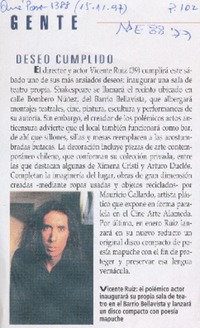 Deseo cumplido [artículo]. Qué Pasa. -- no. 1388 (nov. 15, 1997) p. 102 retr. .