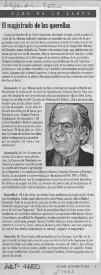El Magistrado de las querellas [artículo]. Qué Pasa. -- no. 1463 (abr. 24, 1999) p. 7. .