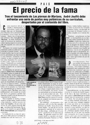 El Precio de la fama [artículo]. Qué Pasa. -- no. 1144 (mar. 13, 1993) p. 20 .
