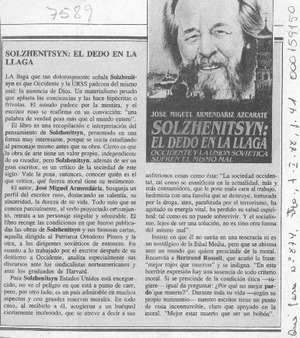 Solzhenitsyn, "El dedo en la llaga" [artículo] Qué Pasa. -- no. 874 (ene. 7, 1988) p. 41 retr. .