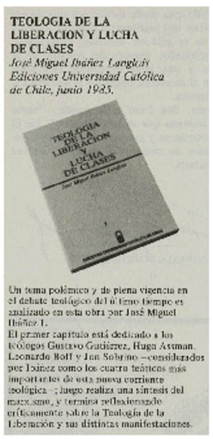 Teología de la liberación y lucha de clases. [artículo] Revista Universitaria (Santiago, Chile)-- no. 16 (1985) p. 98. il. .