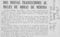 Dos nuevas traducciones al inglés de obras de Neruda. [artículo] Ultima Hora (Santiago, Chile)-- oct. 22, 1971, p. 20. .