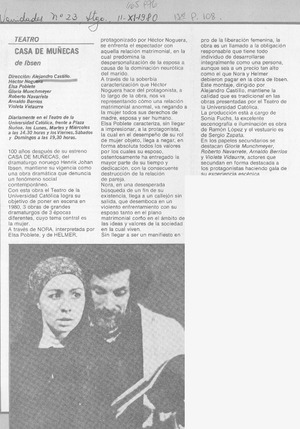 Casa de muñecas de Ibsen. [artículo] Vanidades (Santiago, Chile)-- no. 23 (nov. 11, 1980) p. 108. retr. .