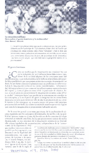 La creación sublime Nota sobre el genio Kantiano y la melancolía [artículo] : Vertebra (Revista : Chile)-- no. 9 (2004) p. 70-77. .