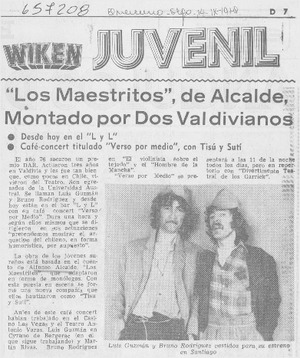 "Los Maestritos", de Alcalde, montado por dos valdivianos. [artículo] El Mercurio (Diario : Santiago, Chile)-- sept. 14, 1979, p. D7. fot. .