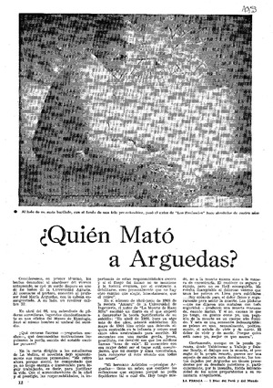 Quién mató a Arguedas?. [artículo] La Prensa (Lima, perú)-- dic. 7, 1969, p. 12. retr. .