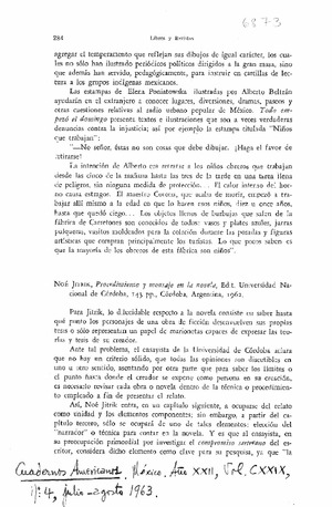 Procedimiento y mensaje en la novela. [artículo] Cuadernos Americanos (México, Chile)-- no. 4, año 22, vol. 129 (jul. 1963) p. 284-286. .
