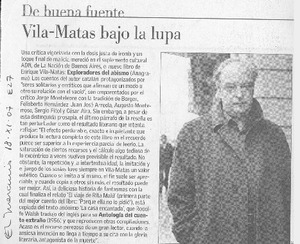 Vila-Matas bajo la lupa [artículo]. El Mercurio (Diario : Santiago, Chile)-- nov. 18, 2007, p. E27. .