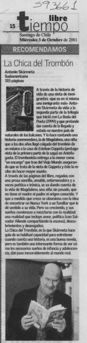 La chica del trombón [artículo] La Hora de la tarde (Santiago) oct. 3, 2001, p. 15 retr. .