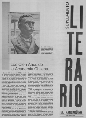 Los cien años de la Academia Chilena. [artículo] El Rancagüino (Diario : Santiago, Chile)-- jun. 5, 1985. retr. .