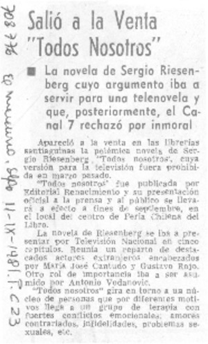 Salió a la venta "Todos Nosotros". [artículo] El Mercurio (Diario : Santiago, Chile)-- sept. 11, 1981, p. C23. .