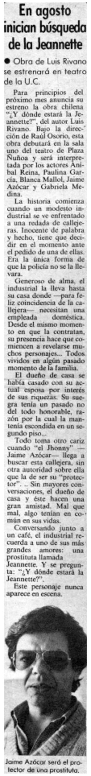 Autores chilenos - Rivano, Luis - Y dónde estará la Jeannette