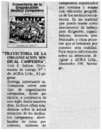 Lea, mire y escuche : Trayectoria de la Organización Sindical Campesina [artículo] Solidaridad (Revista : Santiago, Chile)-- no. 212 (nov. 1, 1985) p. 23. il. .