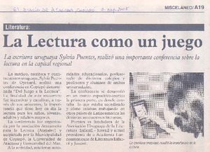 Literatura : la lectura como un juego [artículo]. El Atacama (Copiapo, Chile) mayo 2005, p. A19. .
