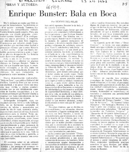 Enrique Bunster, bala en boca [artículo] Hernán del Solar.