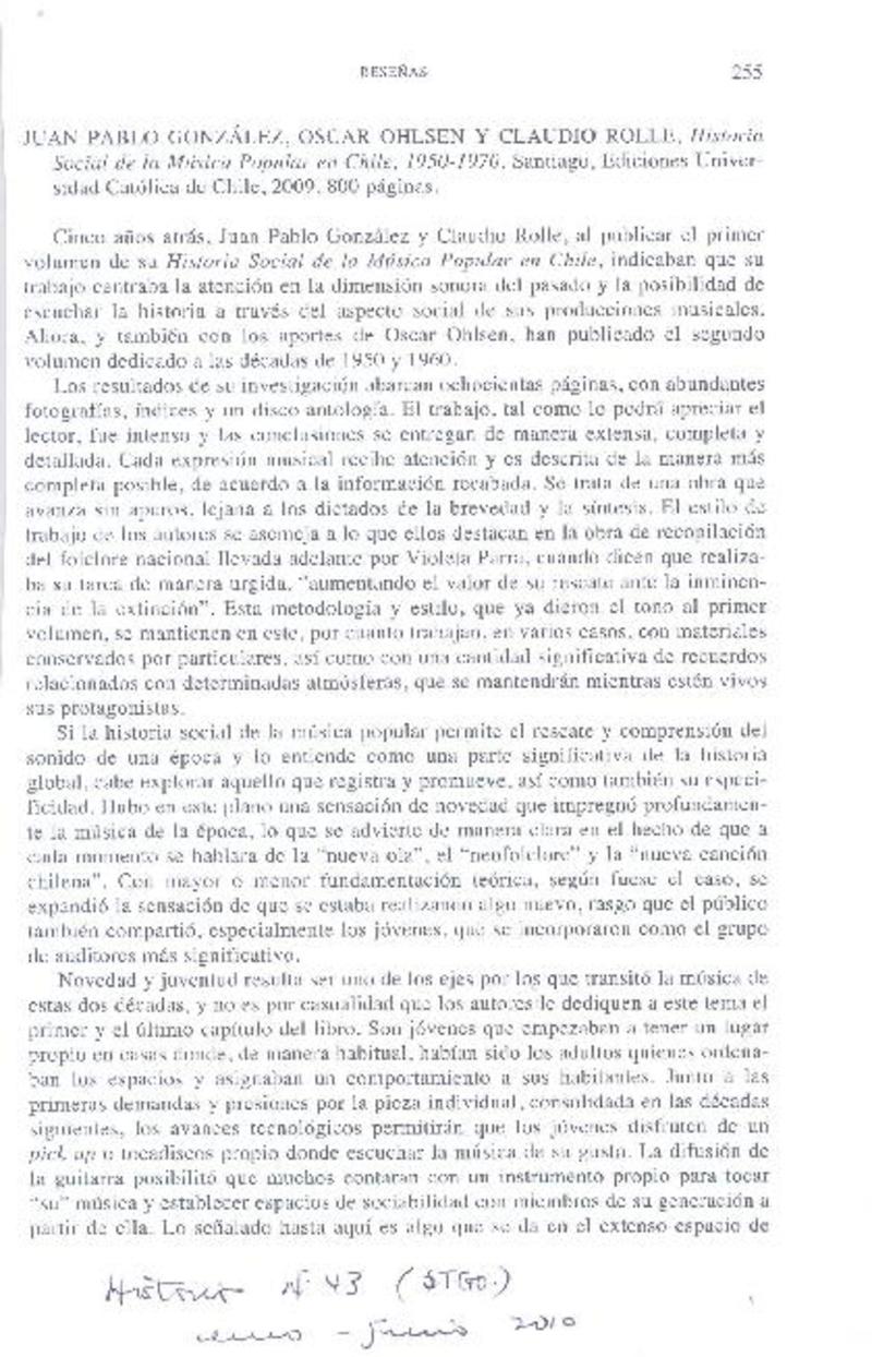 Historia social de la música popular en Chile [artículo] Nicolás Cruz.