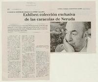 Exhiben colección exclusiva de las caracolas de Neruda [artículo]. La Tribuna (Diario : Los Angeles, Chile)-- feb. 27, 2010, p. 22. .
