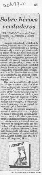 Sobre héroes verdaderos  [artículo] G. Angelcos.
