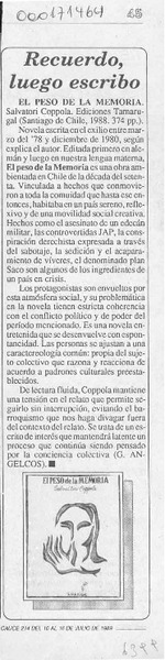 Recuerdo, luego escribo  [artículo] G. Angelcos.