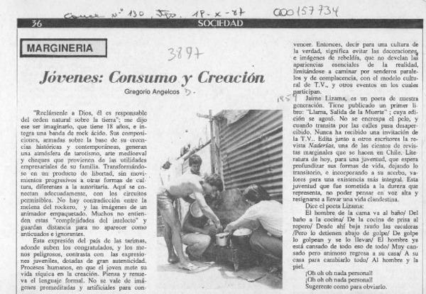 Jóvenes, consumo y creación [artículo] Gregorio Angelcos.
