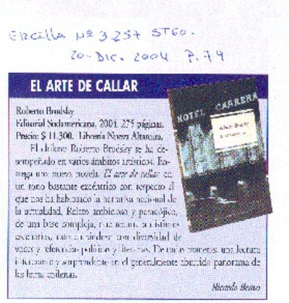 Brodsky, Roberto - Arte de callar - Autores chilenos