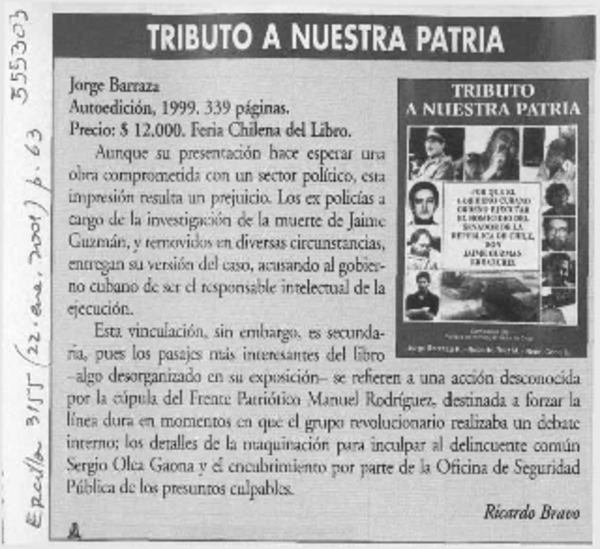 Tributo a nuestra patria [artículo] Ricardo Bravos